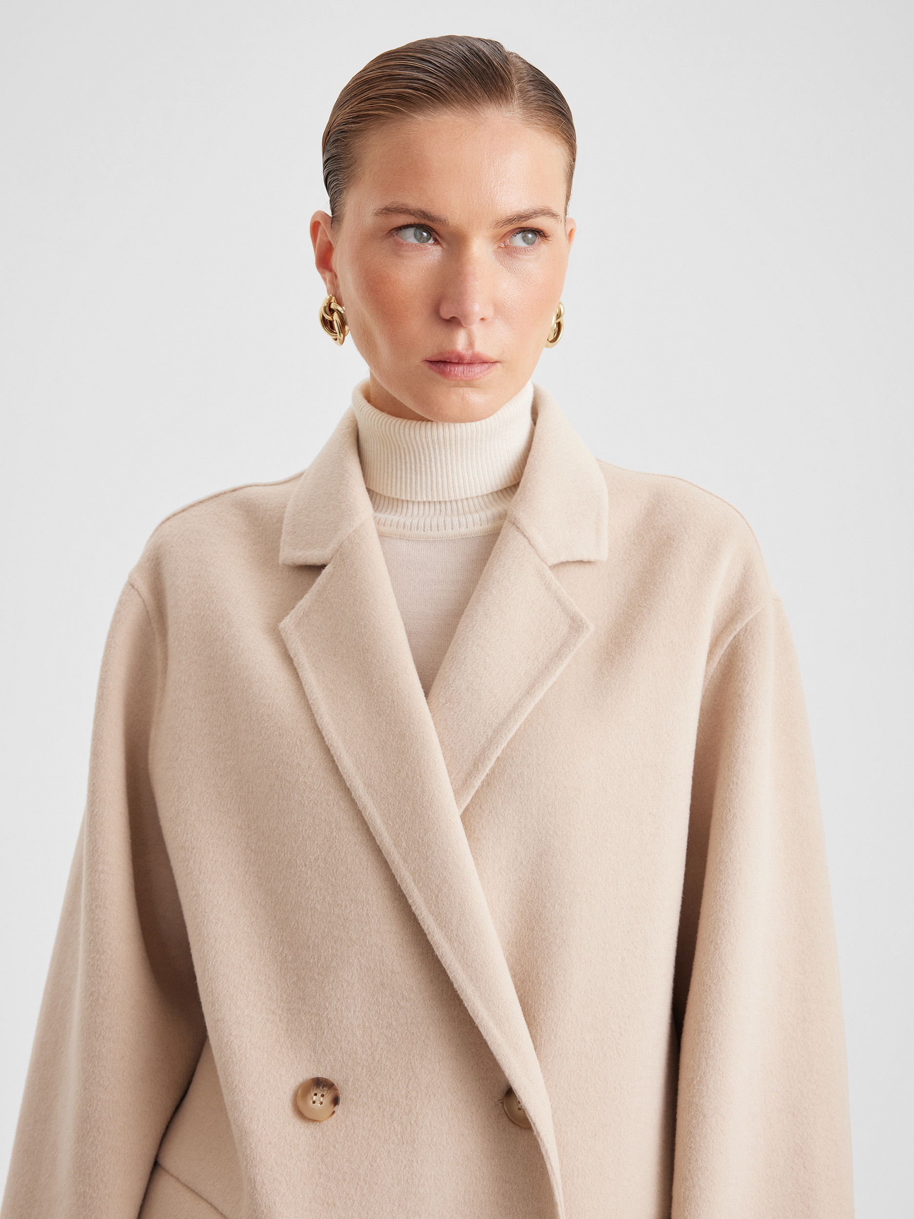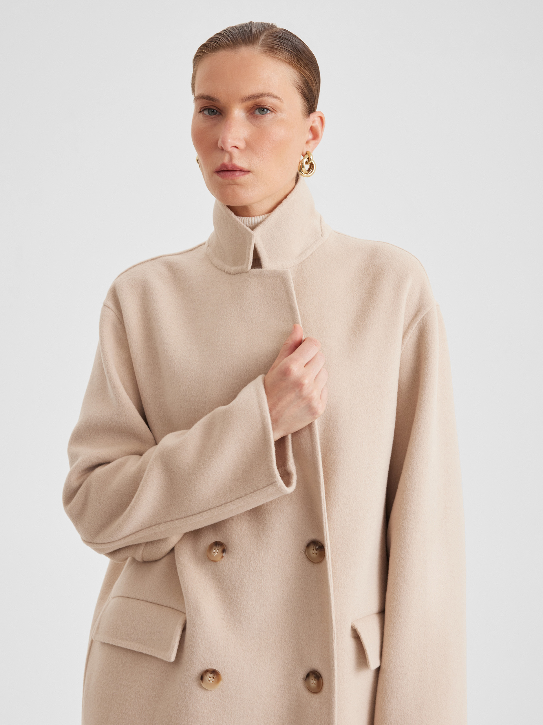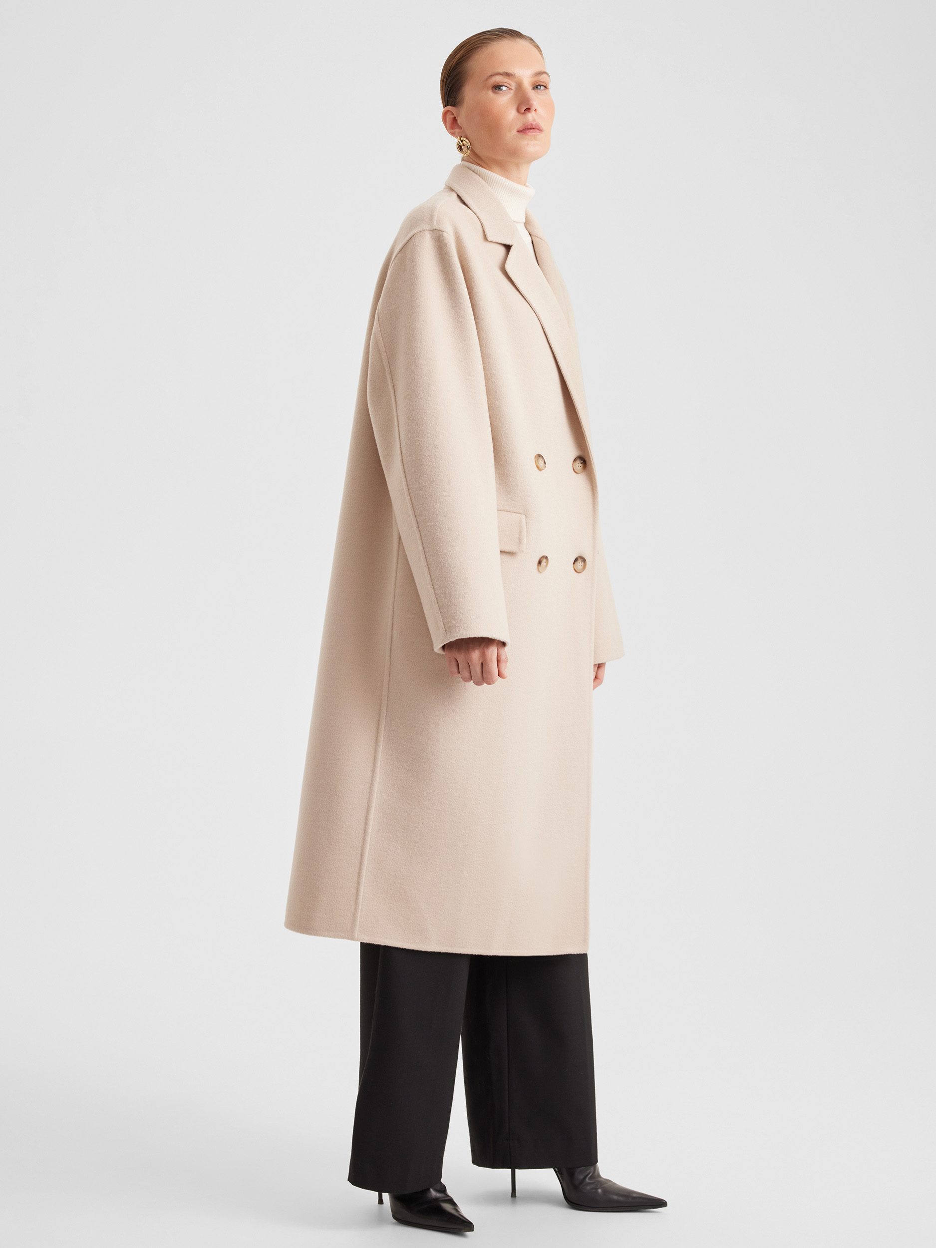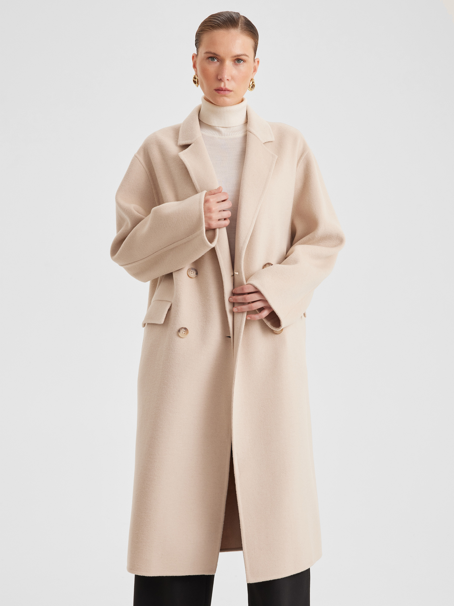 Пальто двубортное оверсайз из двухсторонней ткани