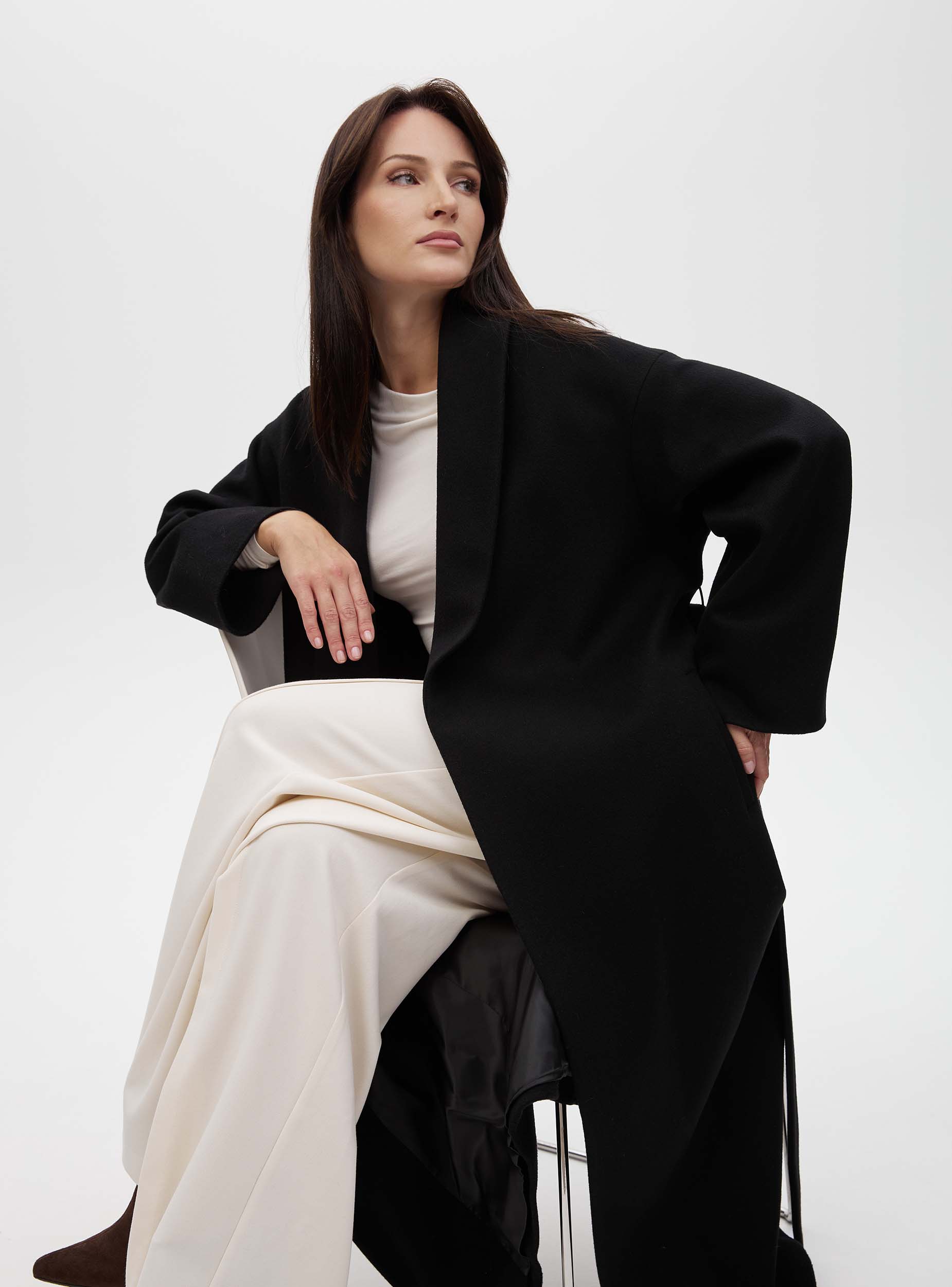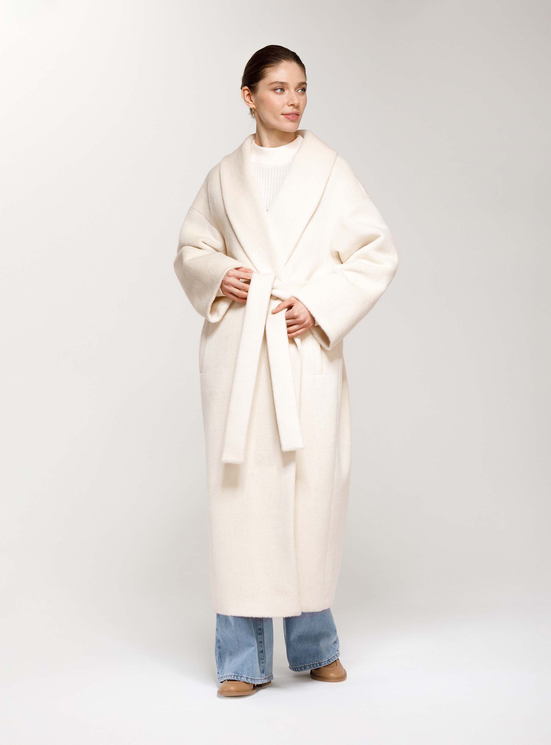 Новая версия нашего бестселлера: в этом сезоне пальто-халат стало еще более уютным, свободным и длинным. Модель сшита из легкой и мягкой шерсти. Изюминка этой модели в ее простате, пластике ткани, в эстетике минимализма. Изделие прямого силуэта, рукав цельновыкроенный с ластовицей, воротник шалевый, нет четкой фиксации по краю борта, за счет этого вы можете увеличивать или уменьшать ширину и объёмы изделия, фиксируя его поясом. Пальто станет прекрасным дополнением к вашему гардеробу. Создавайте свой образ на каждый день вместе с Costoso.