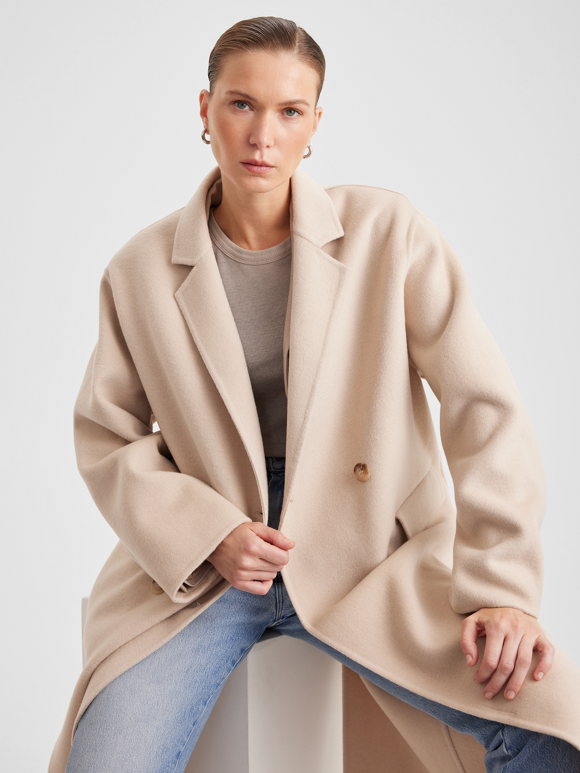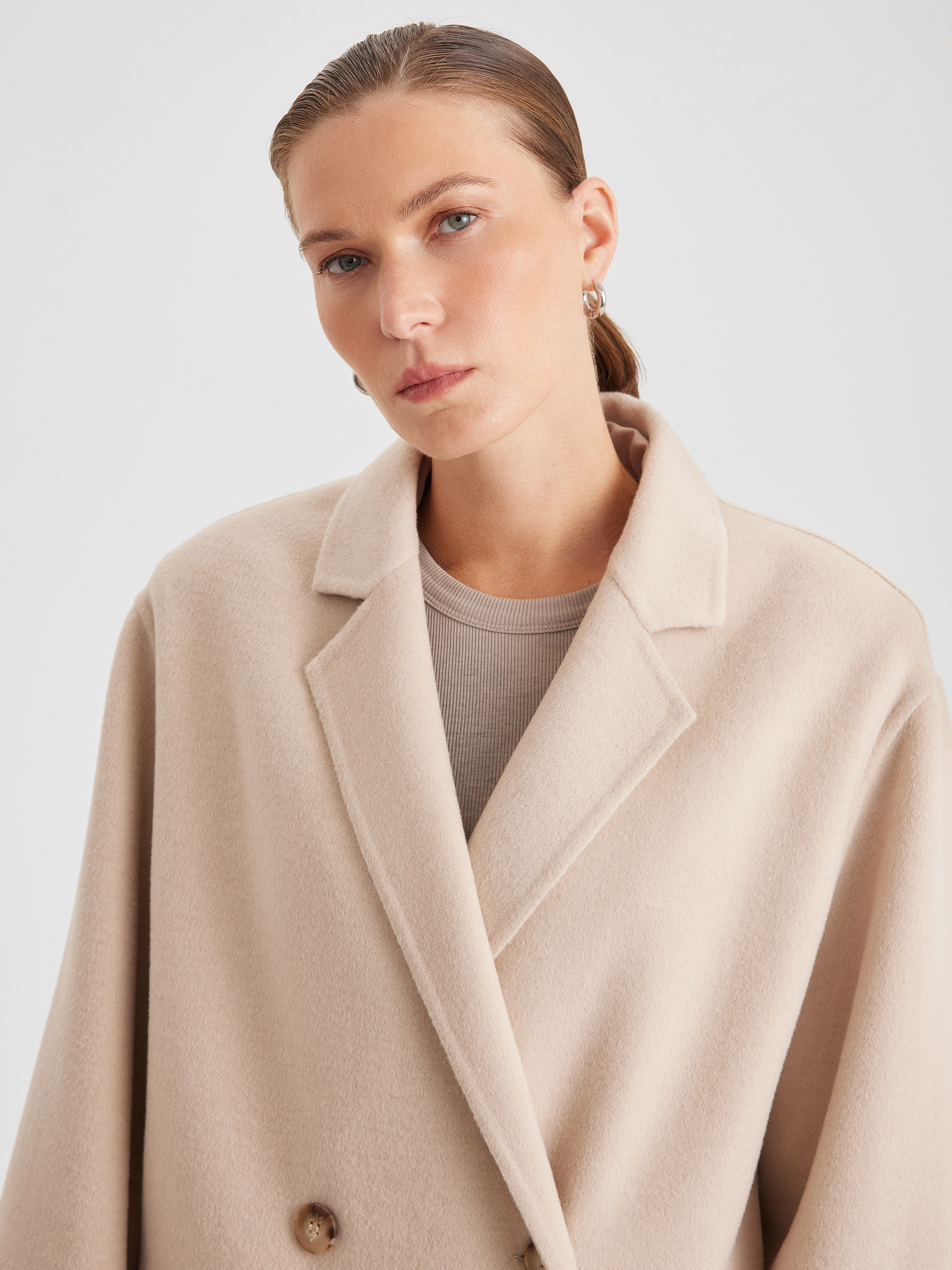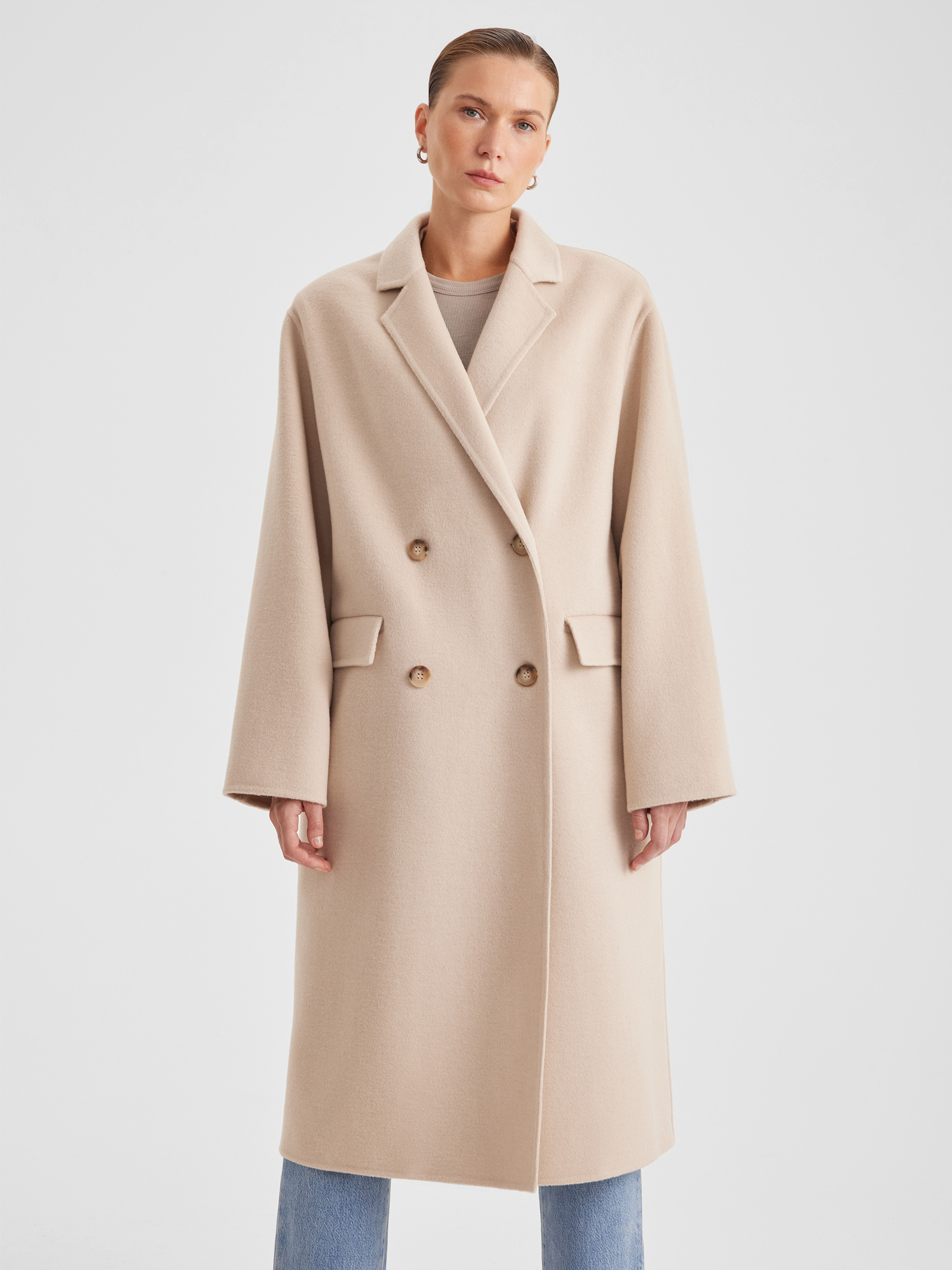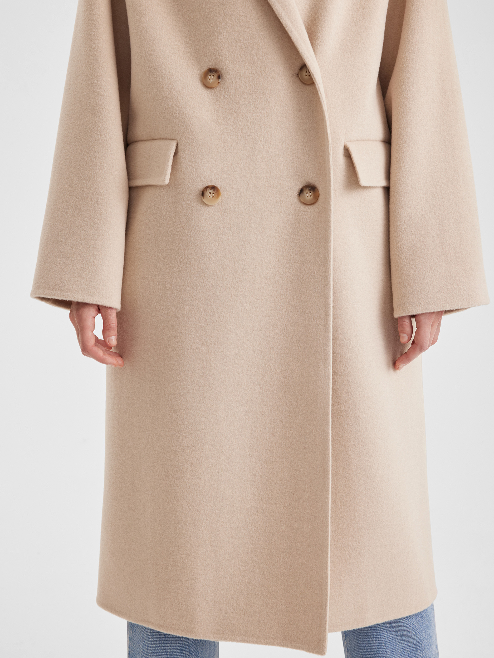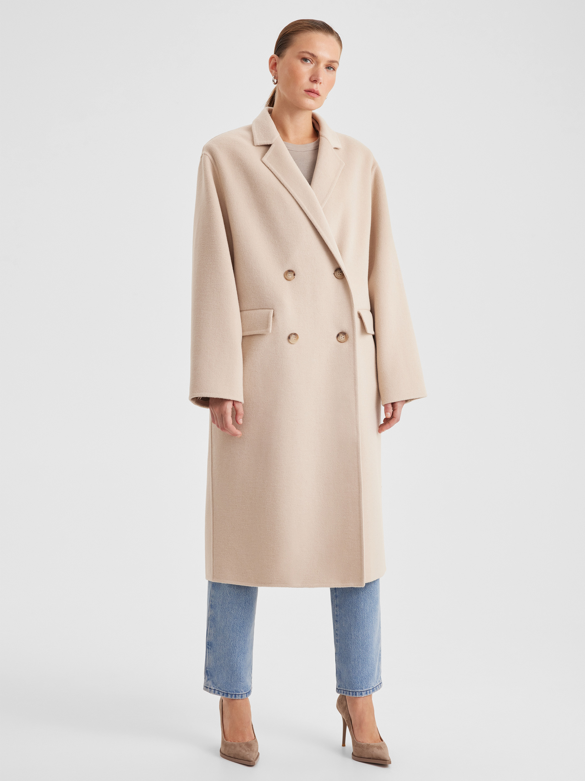 Пальто двубортное оверсайз из двухсторонней ткани