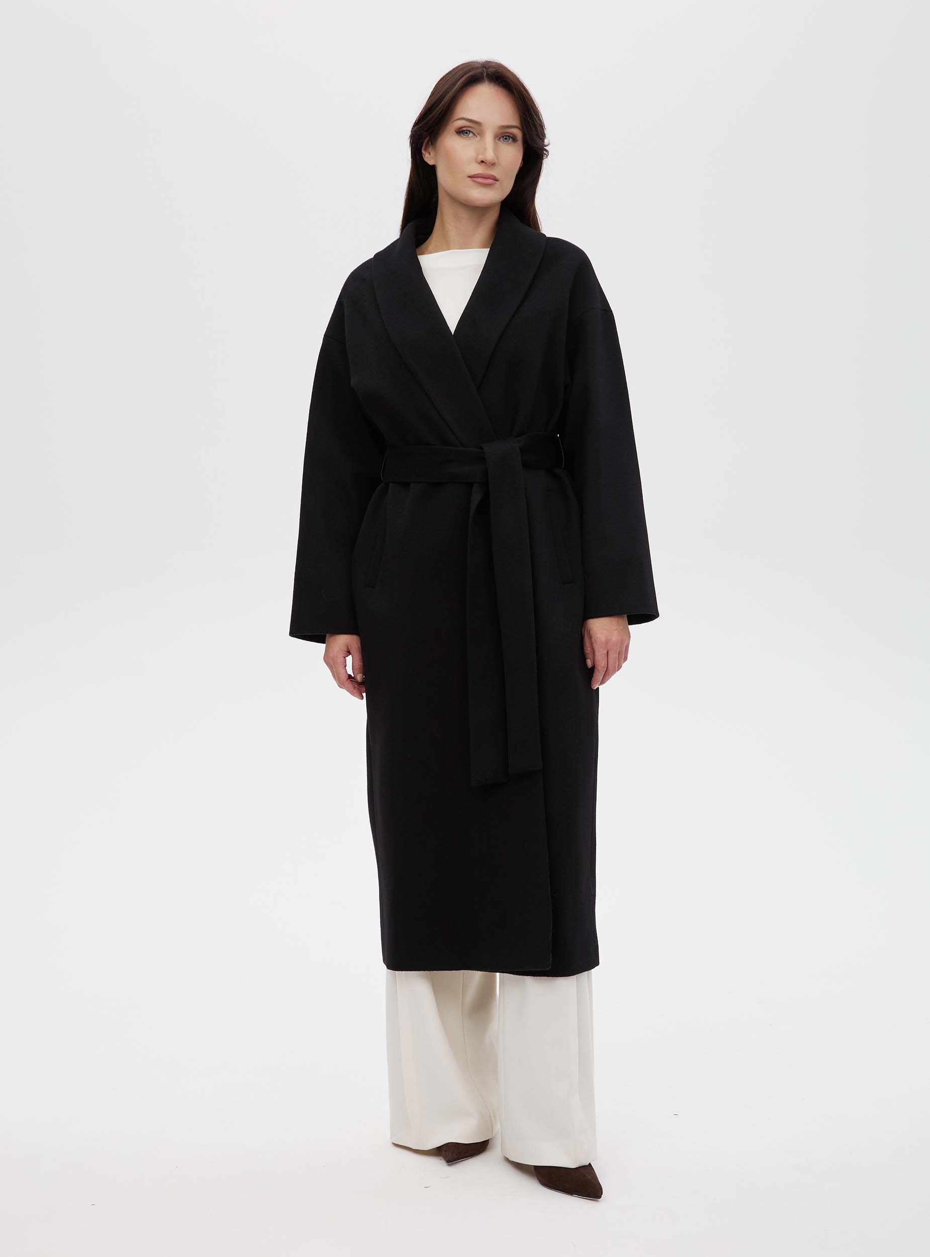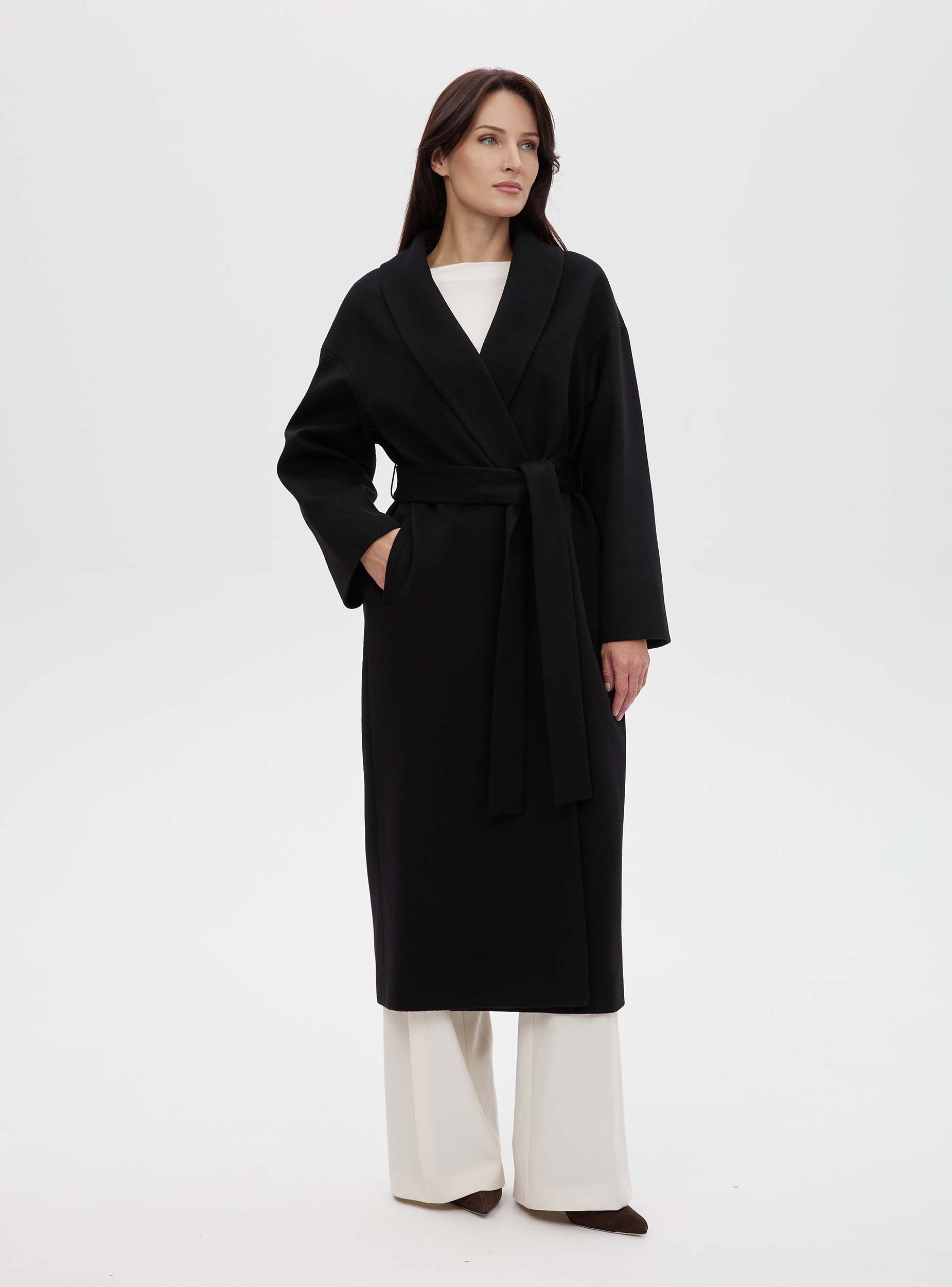 Новая версия нашего бестселлера: в этом сезоне пальто-халат стало еще более уютным, свободным и длинным. Модель сшита из легкой и мягкой шерсти. Изюминка этой модели в ее простате, пластике ткани, в эстетике минимализма. Изделие прямого силуэта, рукав цельновыкроенный с ластовицей, воротник шалевый, нет четкой фиксации по краю борта, за счет этого вы можете увеличивать или уменьшать ширину и объёмы изделия, фиксируя его поясом. Пальто станет прекрасным дополнением к вашему гардеробу. Создавайте свой образ на каждый день вместе с Costoso.