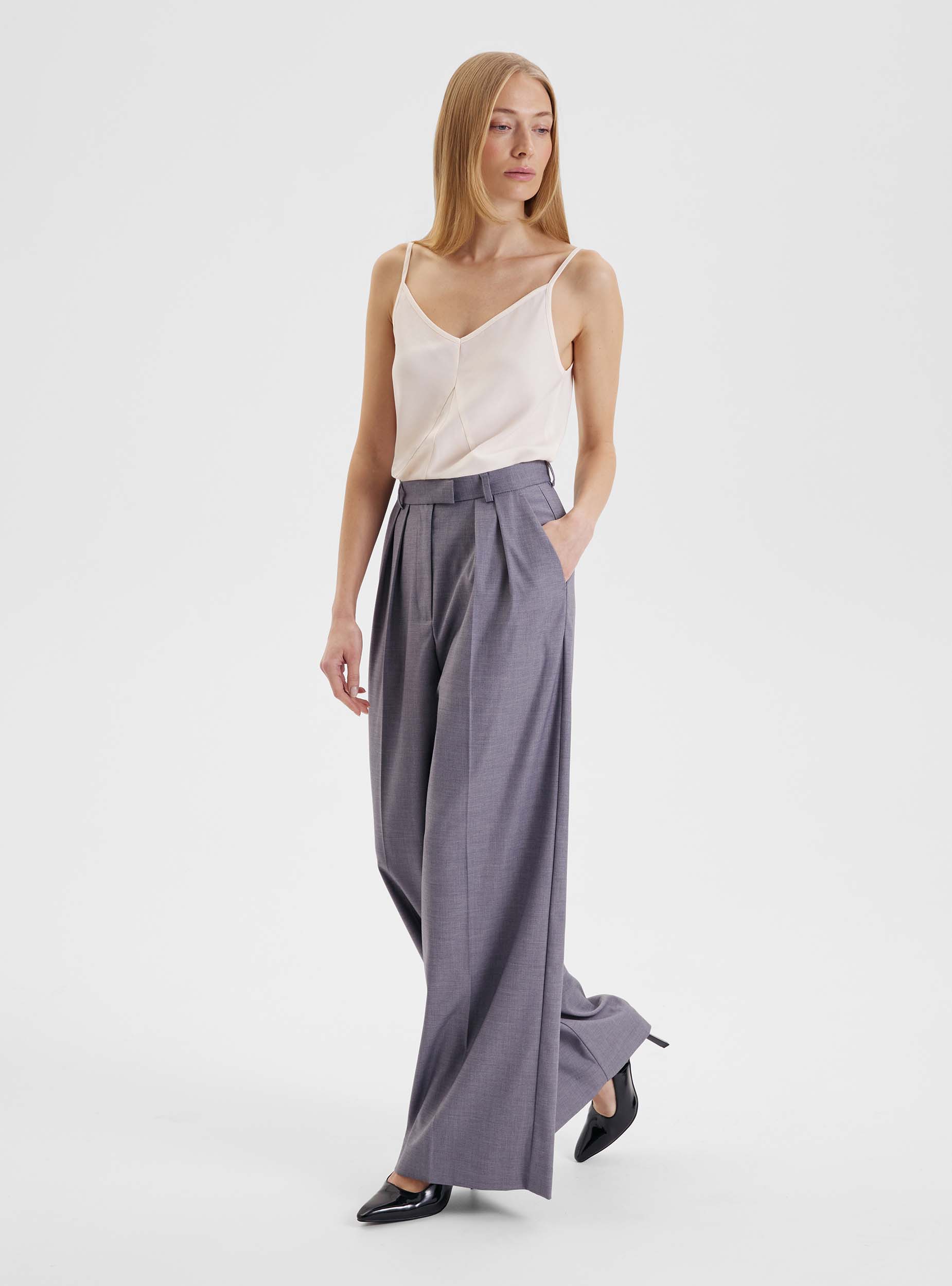 costoso, брюки Аделаида костюмка,Серый меланж,ПЭ80%В18%Эл2%